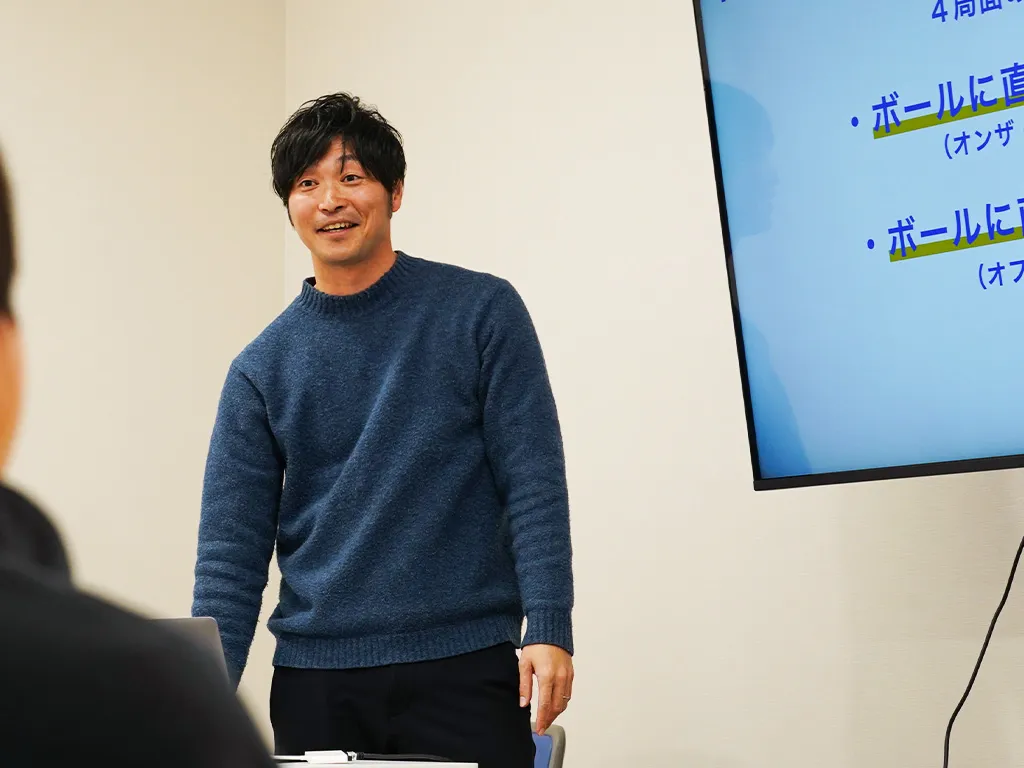改善提案→実践→再分析のサイクルで成長を見える化し、プロ基準の戦術理解を個別にサポートします。